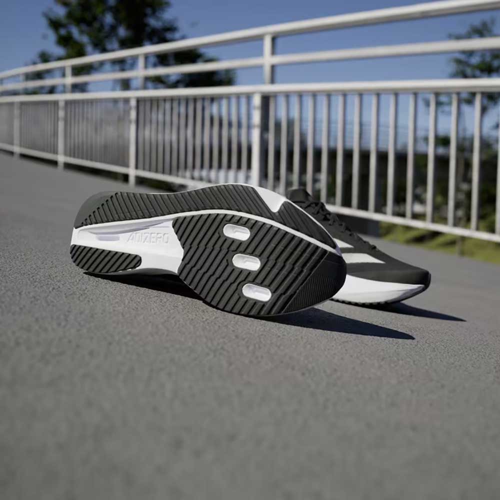 Experience the thrill of breaking personal records in a shoe that's as fast as you are. These adidas Adizero running shoes are equipped with responsive Lightstrike Pro, super-light cushioning that delivers energy return for next-level speed. The engineered mesh upper provides breathability and targeted support where you need it most to keep you flying to the finish.